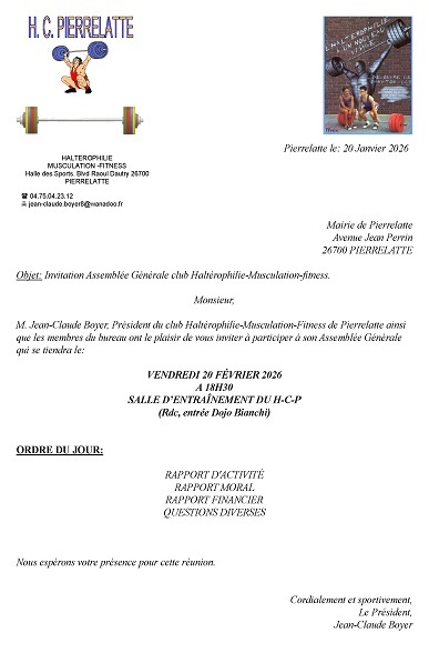 Assemblée Generale vendredi 20 fevrier 2026 à 18h 30